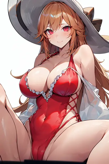 PS:キャラクターロラとして使用できます。推奨プロンプト: fleuron-hairstyle, outfit-fleuron, milf, curvy, 1girl, sun hat, solo, long hair, blonde hair, spread legs, simple background, looking at viewer, red eyes, feet out of frame, blush