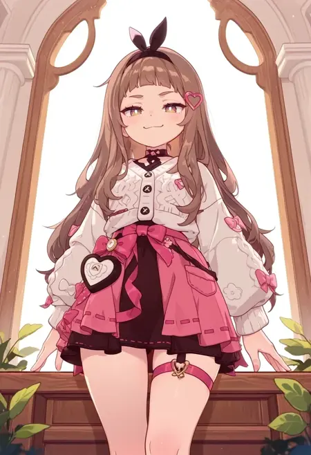 maplehna,black hairband,star \(symbol\),white sweater,black skirt,pink skirt,heart hair ornament,