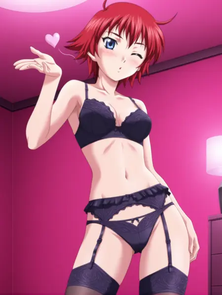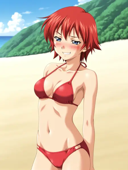 xca_kaoru、赤髪、短髪、ふんわりした髪、とげとげした髪、ボーイッシュ、青い目、1girl、