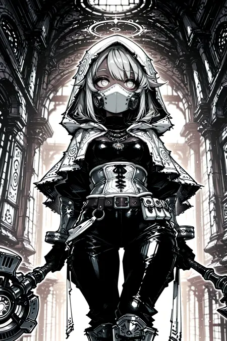 이 LoRA는 두 가지 공통점을 가진 이미지들을 기반으로 학습되었습니다. 첫째, 이미지가 종종 흰색 테두리 안으로 끼어 들어가는 방식으로 그려졌는데, 이는 브리스톨 보드로 일러스트를 그릴 때(제 경험에 비추어) 흔히 발생하는 현상과 유사합니다. 둘째, 캐릭터의 눈에는 종종 나선형 또는 회전하는 형태가 포함되어 있었습니다.