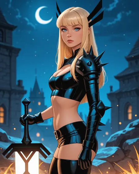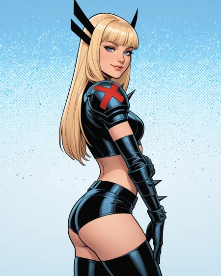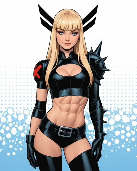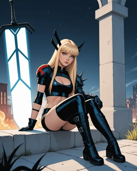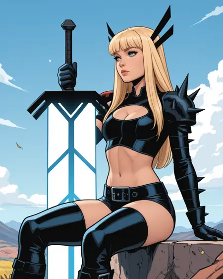 일리아나 라스푸틴, 즉 크리스 바칼로가 디자인한 현대식 언캐니 X-Men 복장으로 등장하는 X-Men의 마젠틱. 그녀의 현대 복장으로 된 다른 멋진 LoRA들도 존재하지만, 그녀는 제가 가장 좋아하는 여성 X-Men 캐릭터이기 때문에 직접 만들어봤습니다. 하지만 태그가 정말 많네요!