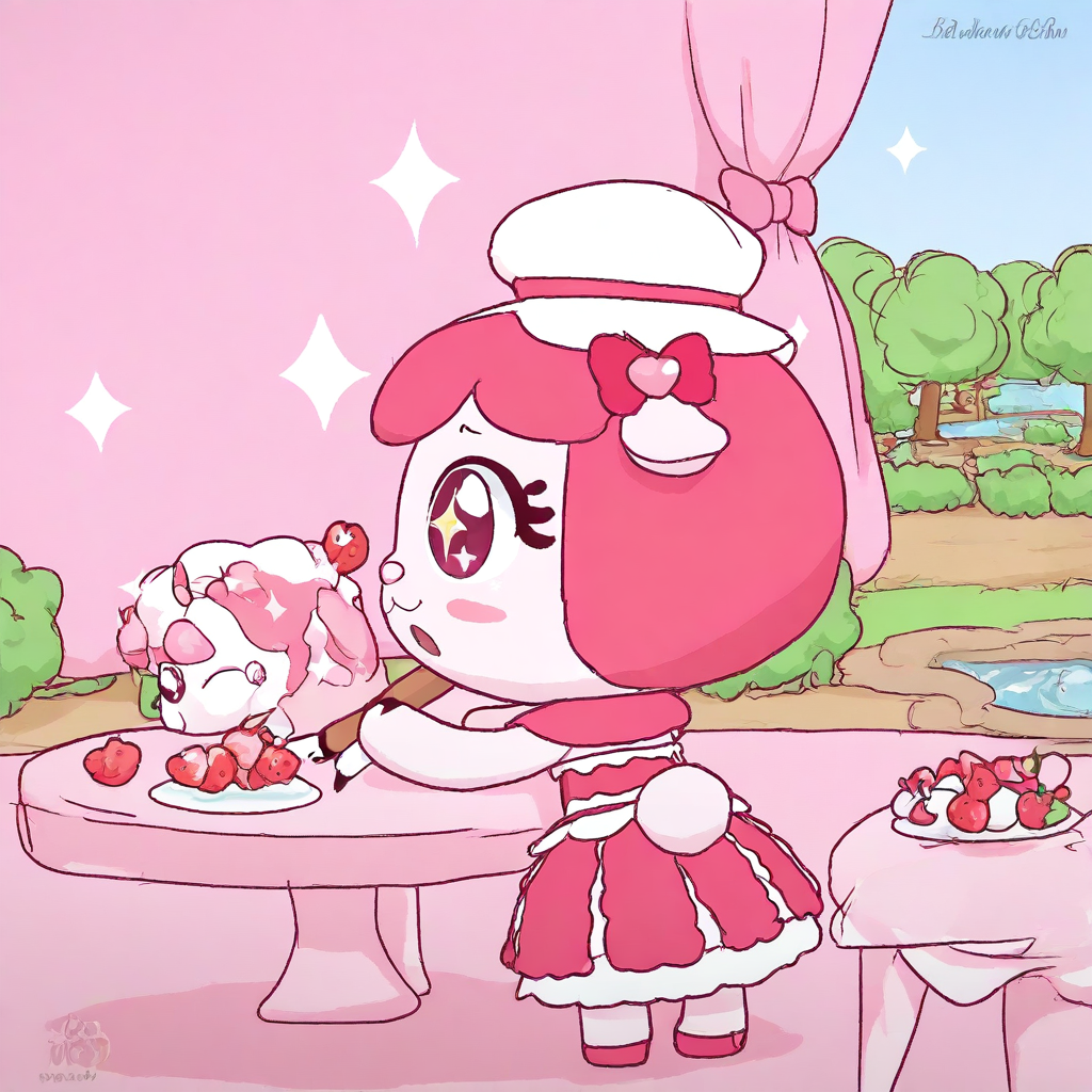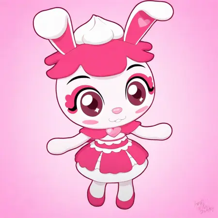 | 학습된 단어 | 1girl, (anthro, furry, furry female) mousse benetta, rabbit, (light pink skin, light pink fur, bodyfur), white rabbit ears, pink heart-shaped markings on ears, pink nose, big eyes, dark pink eyes, eyelashes, makeup, eye makeup, hot pink eyeshadow, blush stickers, (white and hot pink strapless sleeveless frilly dress), light pink heart-shaped brooch, white ruffles, hot pink frills, hot pink capelet, (hot pink capelet layered over strapless sleeveless frilly dress), hot pink frilled cap, food-themed hair ornament, food on head, whipped cream hair ornament, hot pink shoes복사됨! |