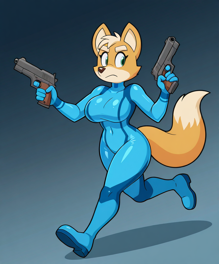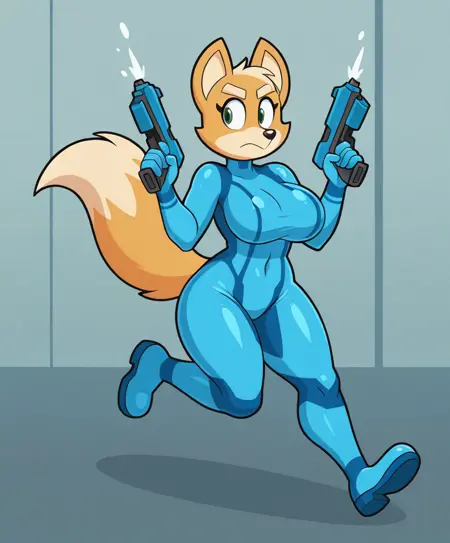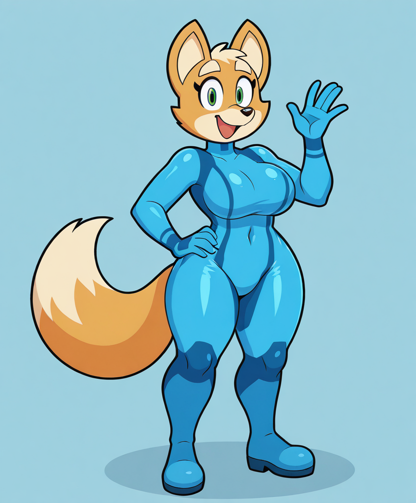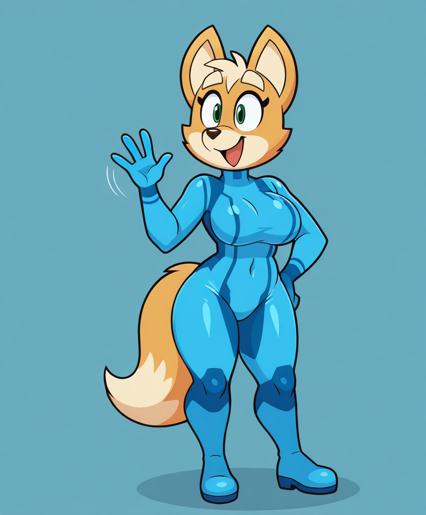 | 训练词汇 | zero_suit_fox, breasts, large breasts, blonde hair, animal ears, green eyes,tail, full body, thighs, fox ears, covered navel, bodysuit, thick thighs, thick eyebrows,furry,skin tight, furry female, body fur, white fur, animal nose, two-tone fur, blue bodysuit, snout, yellow fur, zero suit, orange fur, fox girl已复制! |