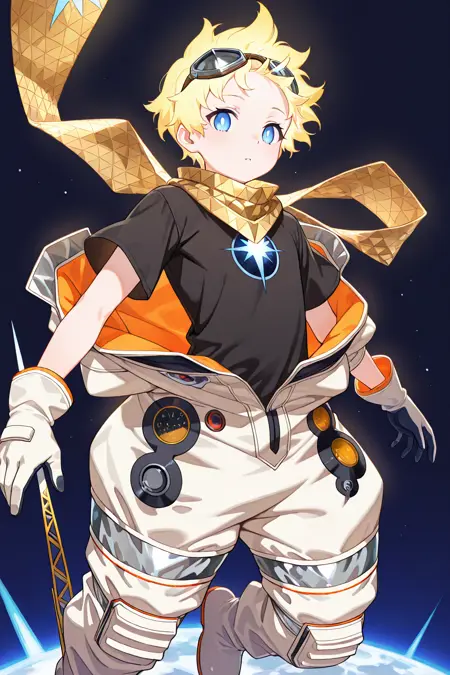| 训练词汇 | skin1, yellow_footwear, baggy_clothes, yellow_scarf, tunic, bright pupils, white pupils, 已复制! voyager, blonde hair, blue eyes, skin2, bright pupils, white pupils, belt, boots, purple_footwear, white_coat, white_shirt, white shorts, rose, 已复制! voyager, blonde hair, blue eyes, skin3, bright pupils, white pupils, goggles, spacesuit, scarf, yellow_scarf, baggy_clothes, gloves, bomber jacket, fur_trim, 已复制! voyager, blonde hair, blue eyes, skin3, bright pupils, white pupils, goggles, spacesuit, scarf, yellow_scarf, gloves, full_body, open_clothes, bodysuit, (black_shirt:1.3), short_sleeves, floating, baggy_clothes, 已复制! |