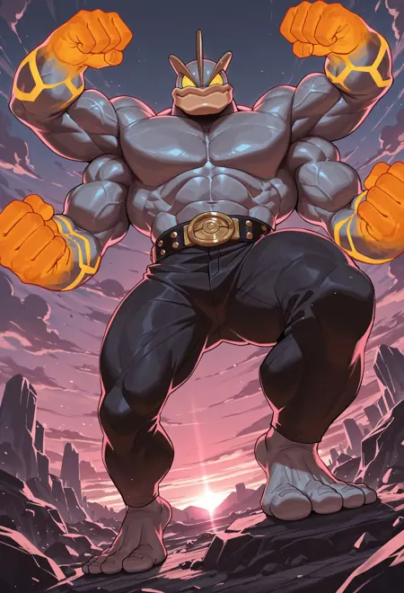 Machamp is a muscular, four-armed Fighting-type Pokémon known for its incredible strength and power.