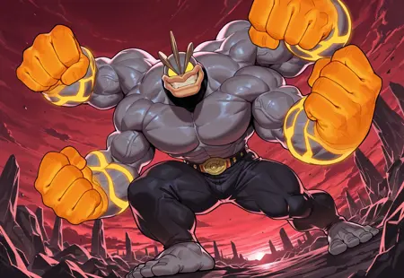은 뛰어난 힘과 파워로 유명한 근육질의 네 팔을 가진 전투 타입 포켓몬이다.