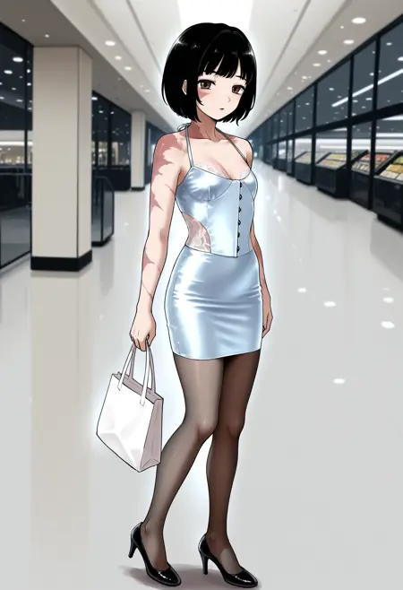 触发词:短裙、紧身胸衣裙、铅笔裙、缎面裙、挂脖裙、蕾丝裙、蕾丝镂空,