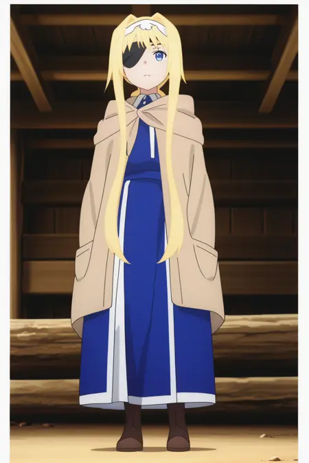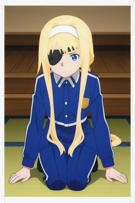 , blue uniform, hairband, eyepatch