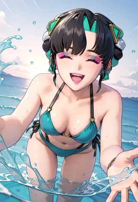 メインタグ: 短髪、黒髪、多色髪、唇、化粧、アイシャドウ、中程度の胸、ジュエリー、髪飾り、イヤリング、ヘアバンド