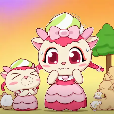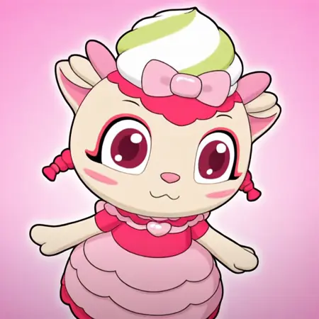 | トレーニングワード | (anthro, furry, furry female), vanilla ellie, sheep, (light skin, light fur, bodyfur), sheep ears, light pink horns, pink nose, short hair, bangs, twin braids, hot pink hair, big eyes, dark pink eyes, eyelashes, makeup, eye makeup, pink eyeshadow, blush stickers, (light pink and hot pink long frilly dress), light pink heart-shaped brooch, pink frilled peter pan collar, hot pink bodice, light pink (long attached layered dress_skirt), pink ruffles, hot pink frills, bow, light pink bow, hair ribbon, food-themed hair ornament, food on head, light green and white striped whipped cream hair ornament コピーしました! |
