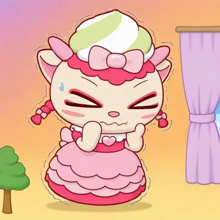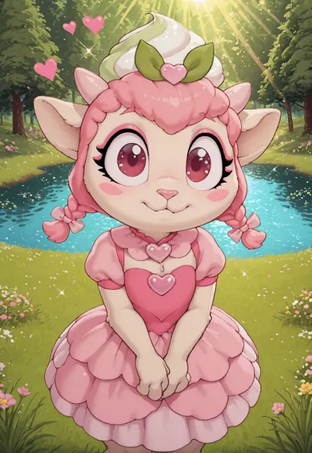 | 학습된 단어 | (anthro, furry, furry female), vanilla ellie, sheep, (light skin, light fur, bodyfur), sheep ears, light pink horns, pink nose, short hair, bangs, twin braids, hot pink hair, big eyes, dark pink eyes, eyelashes, makeup, eye makeup, pink eyeshadow, blush stickers, (light pink and hot pink long frilly dress), light pink heart-shaped brooch, pink frilled peter pan collar, hot pink bodice, light pink (long attached layered dress_skirt), pink ruffles, hot pink frills, bow, light pink bow, hair ribbon, food-themed hair ornament, food on head, light green and white striped whipped cream hair ornament 복사됨! |