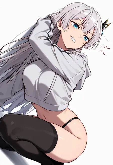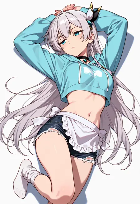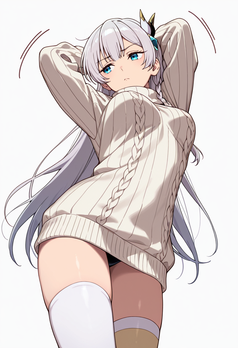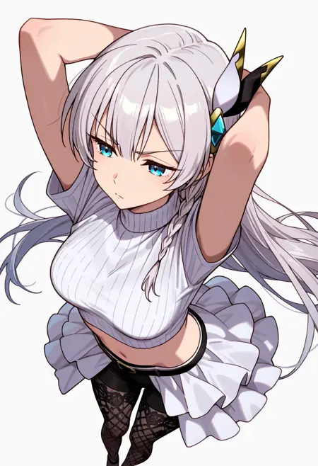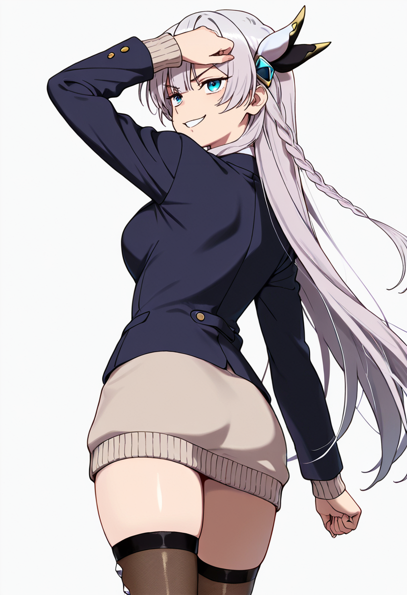 citrus_cnr, 1girl, long hair, blue eyes, grey hair, braid, medium breasts, very long hair, hair ornament,
