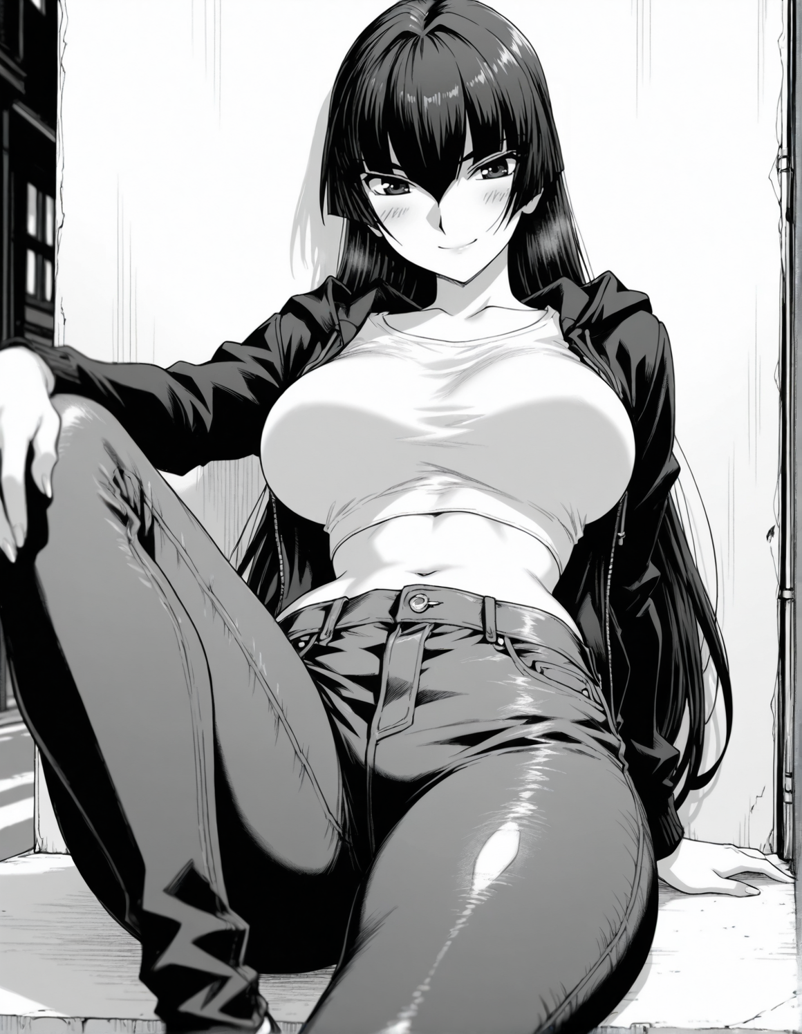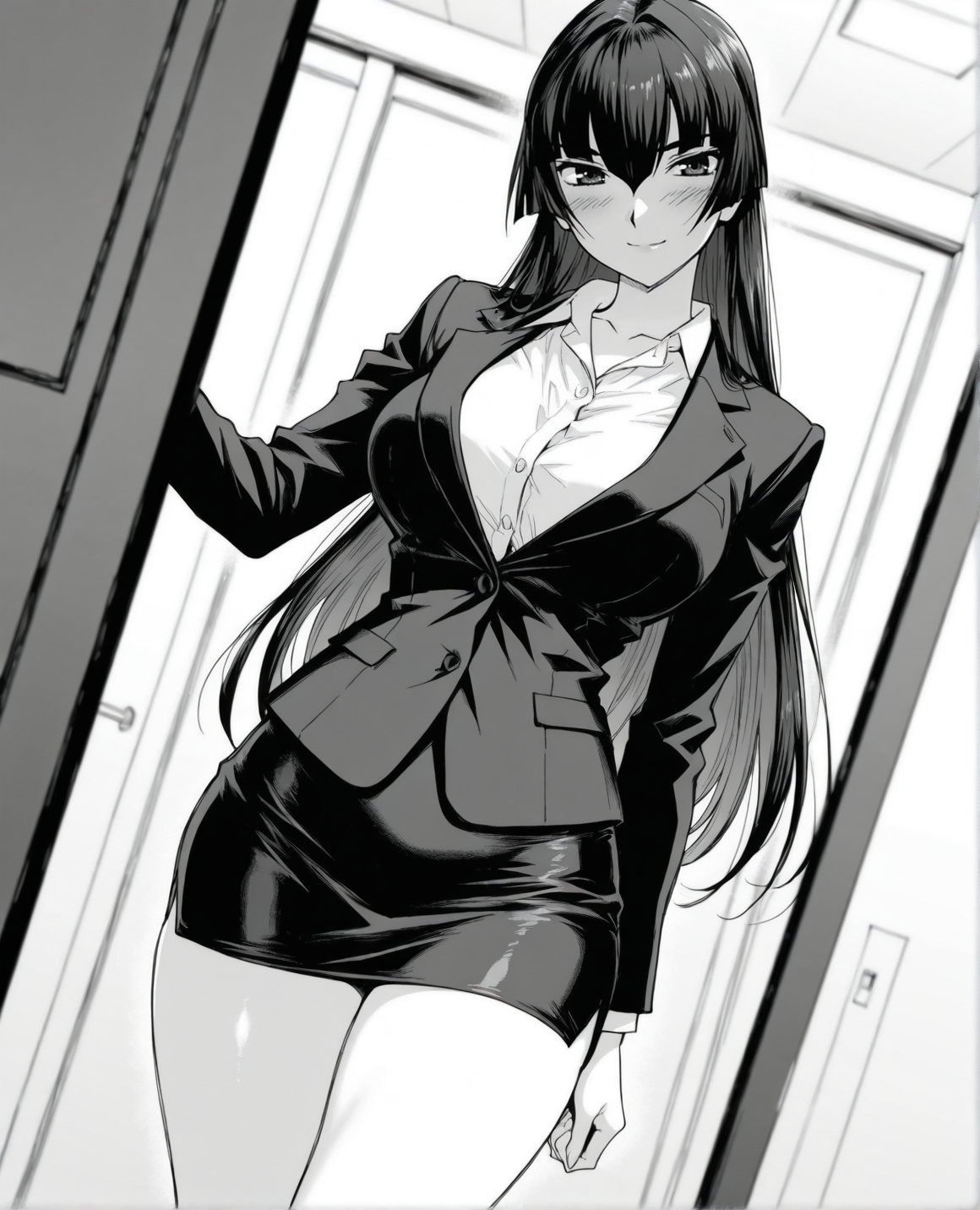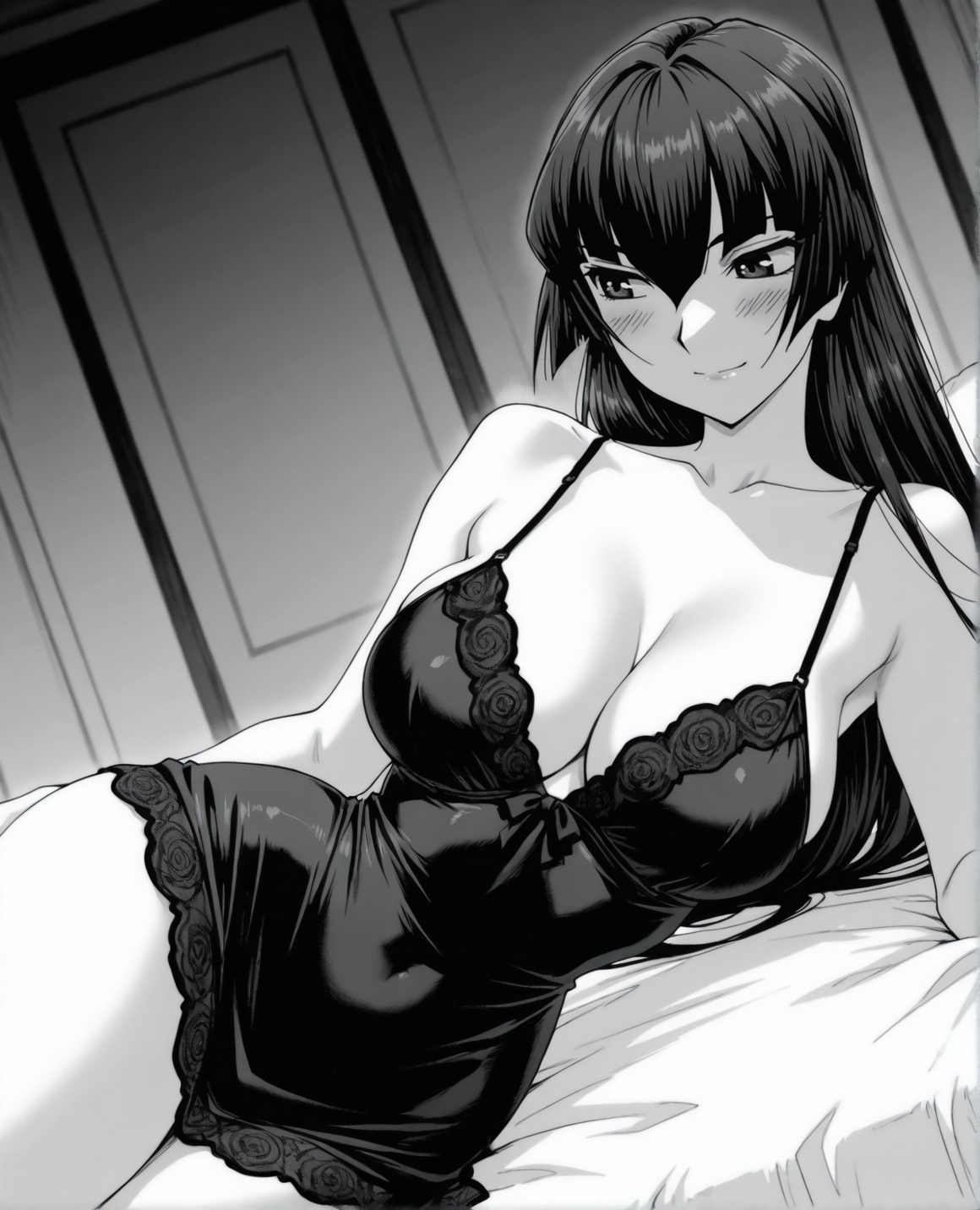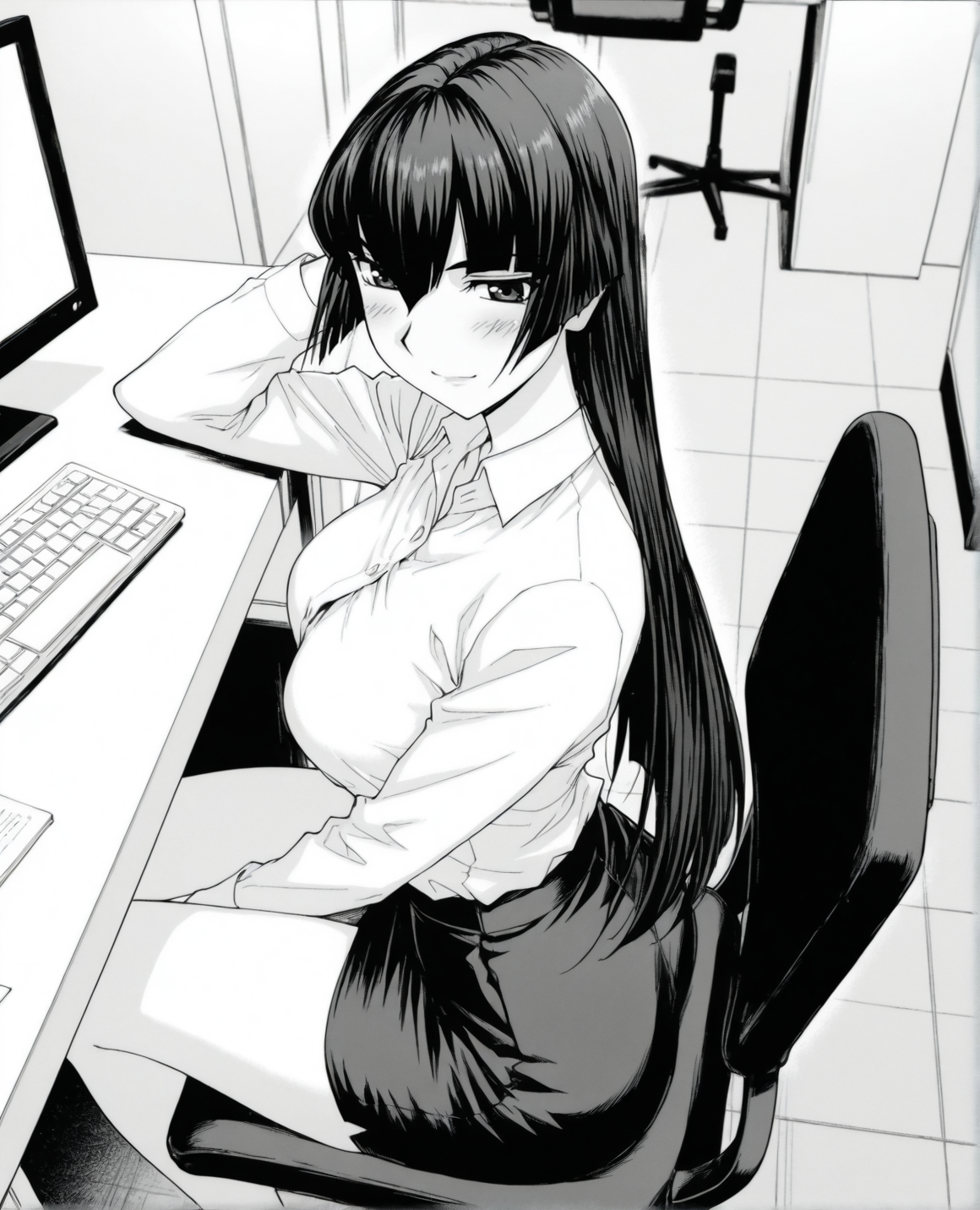 konoewah、モノクロ、グレースケール、長い髪