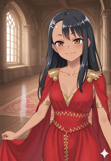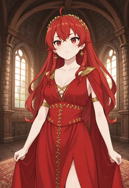 ローマ風のドレス、ドレス、赤いドレス、ジュエリー、