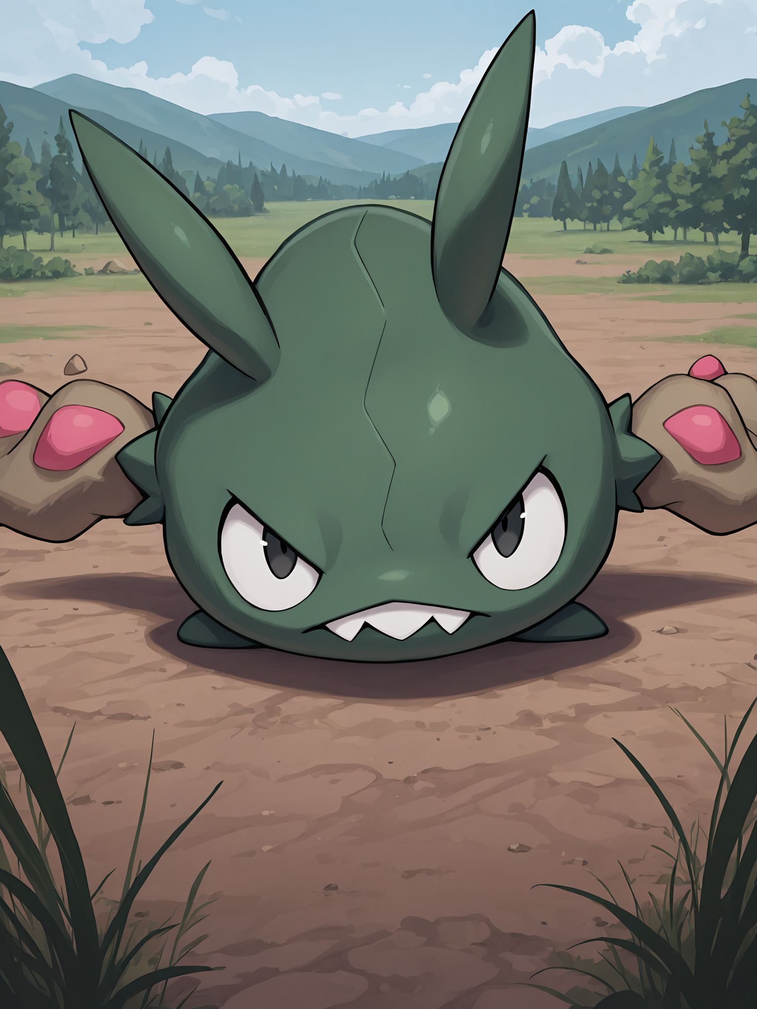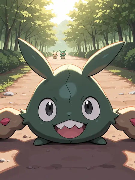 角色标签:宝可梦(生物)、黑眼睛、牙齿、尖牙可选标签:绿色皮肤、绿色身体、(深灰色身体、闪亮)