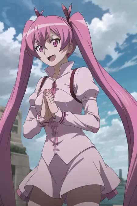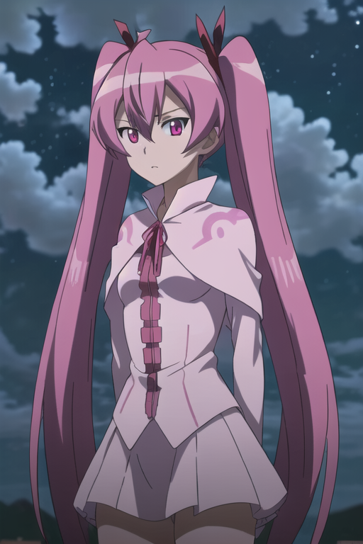 트리거 단어: mine (akame ga kill!), 긴 머리, 분홍색 머리, 분홍색 눈, 트윈테일