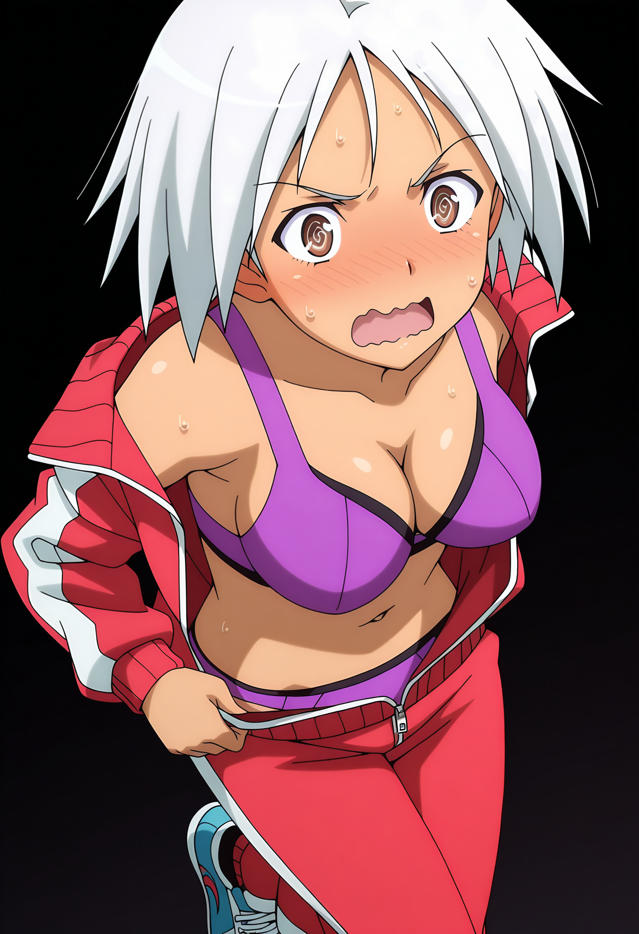 1girl, solo, rio kazama, white hair, short hair, brown eyes, breasts, dark skin, dark-skinned female
