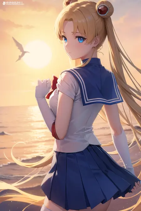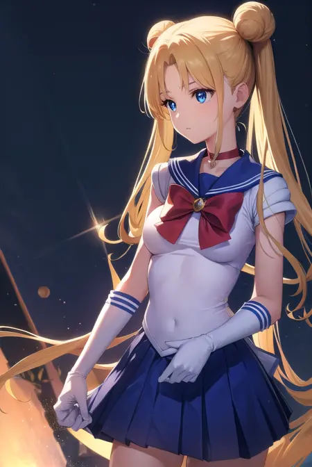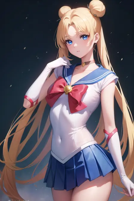 세일러문, 금발, 파란 눈, 더블 둥, 머리 둥, 머리 장신구, 긴 머리, 트윈테일, 원형 머리장식, (나눈 앞머리:1.5),