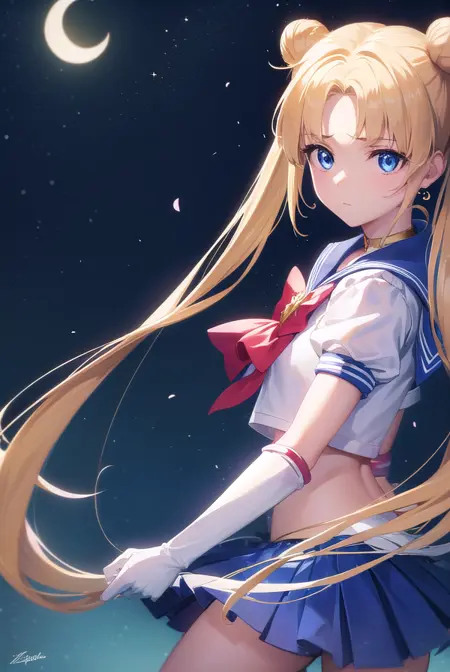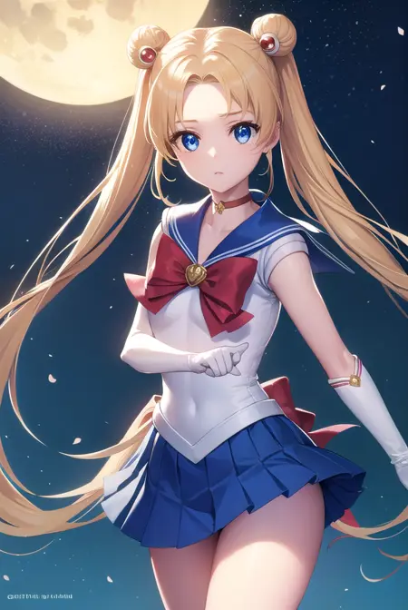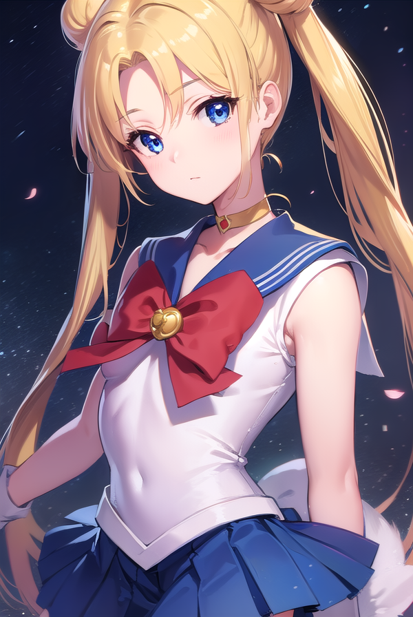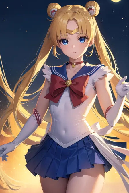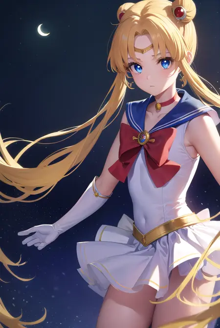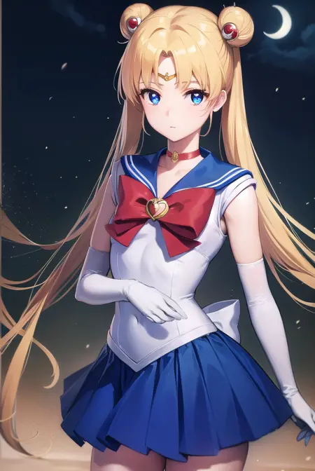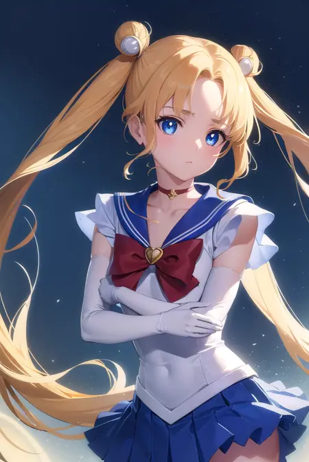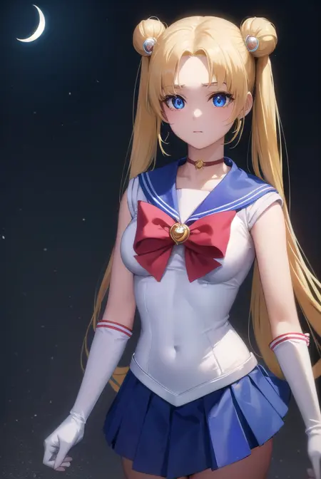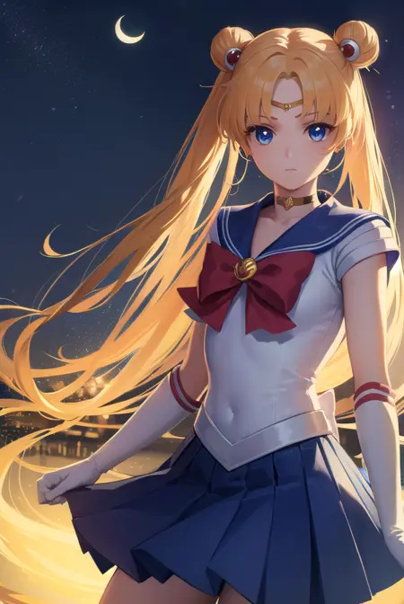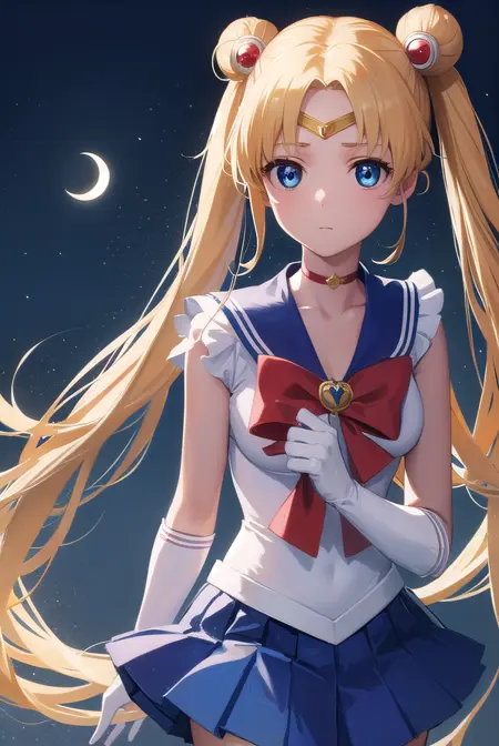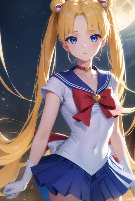 sailor moon,金发,蓝眼睛,双发髻,发髻,发饰,长发,双马尾,头环,(中分刘海:1.5),