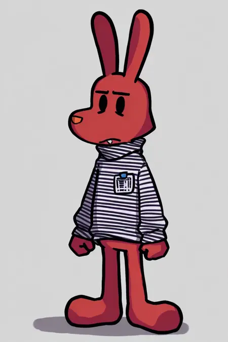 BodoqueFNF, 1boy, red skin, rabbit, white-black shirt, black eyes, no sclera,