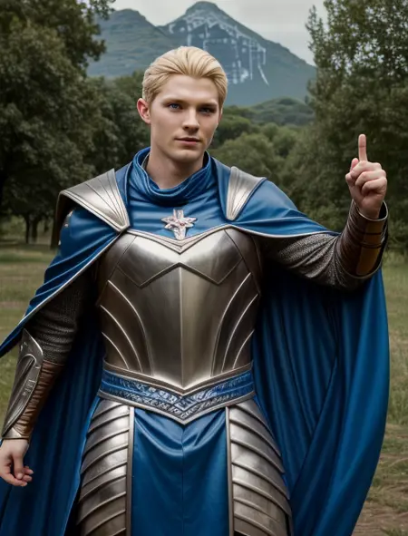 其他可能有帮助的词:蓝色眼睛、金发、铠甲、单人