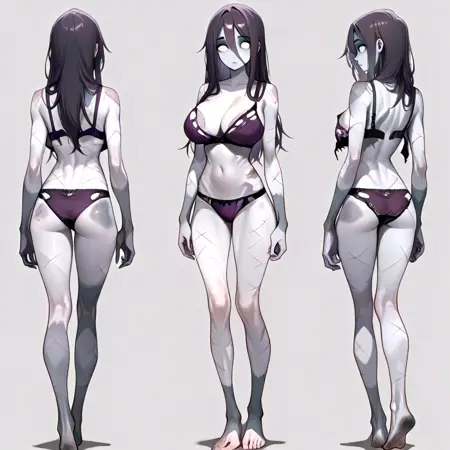 另外很重要:YZombieMommy、僵尸、大乳房、紫色头发、内衣、无瞳孔、白色眼睛
