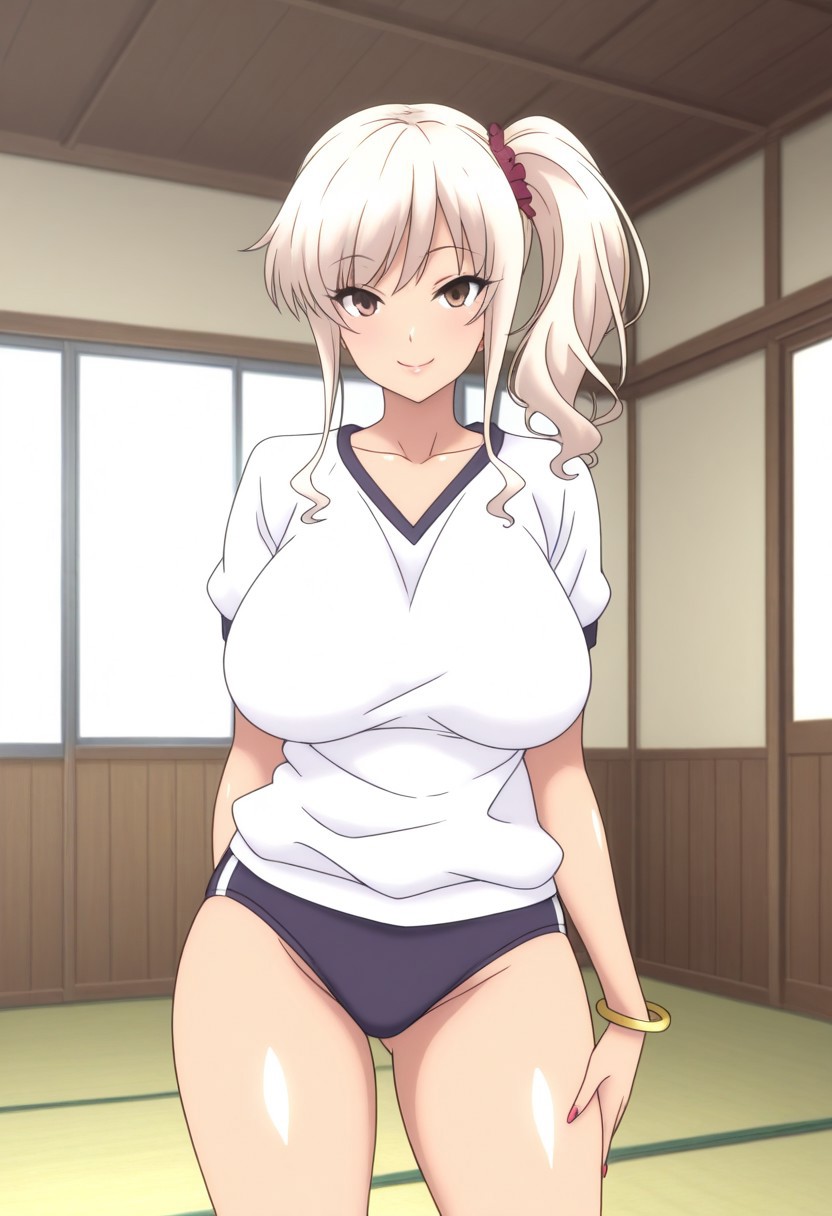 금발, 갈색 눈, 사이드 파니테일, 큰 가슴, 갤루,