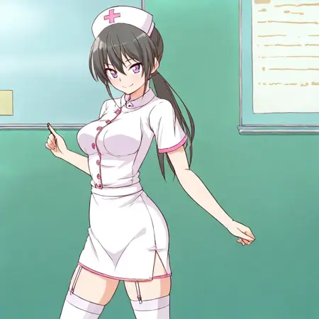 僵尸护士:HoSotD,ZoNur,黑发,长发,马尾,紫色眼睛,僵尸女孩,彩色皮肤,中等胸部