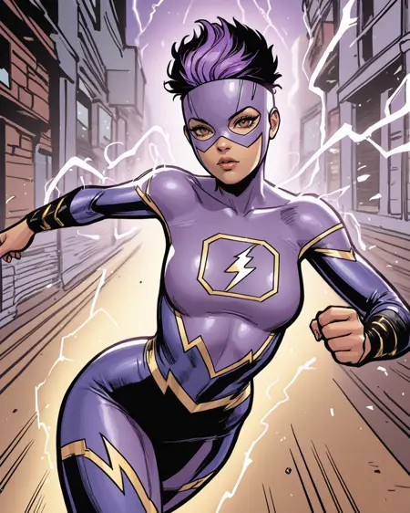 에버리 홀, 애칭 더 플래시. 그녀의 정체는 잘 모르겠지만, 외모가 예쁘다. 다만 그녀의 복장은 항상 다르게 그려져 있어서 일관성이 없다.