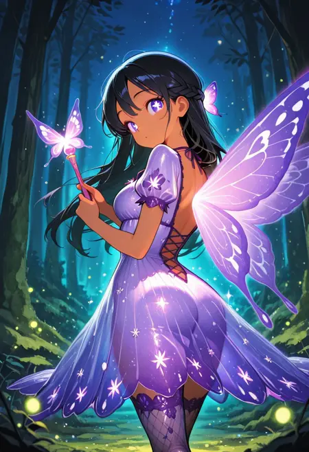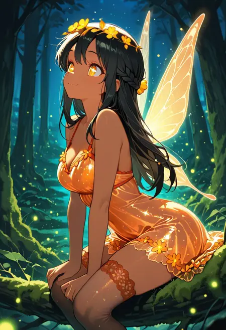 Basic Tags: short glittering lacy silk fairy dress, translucent lacy thigh socks, glitter fairy wings