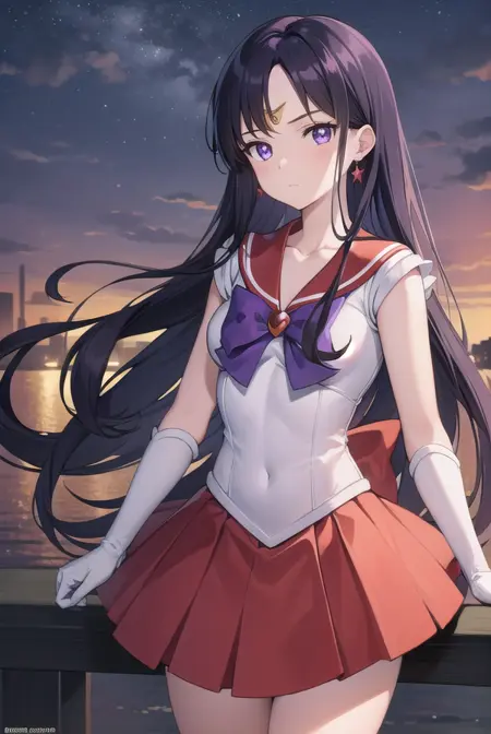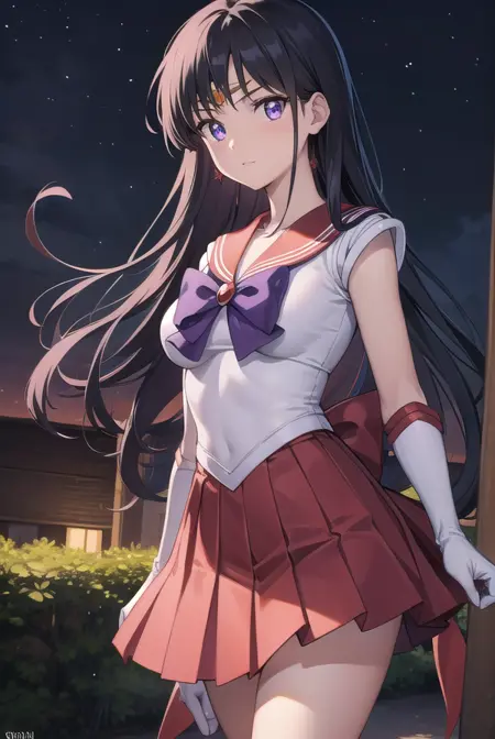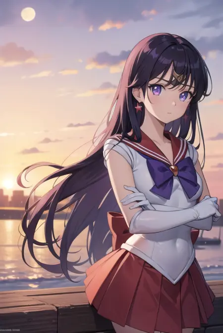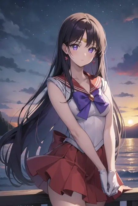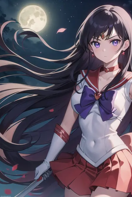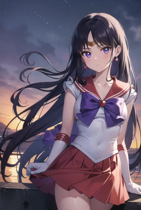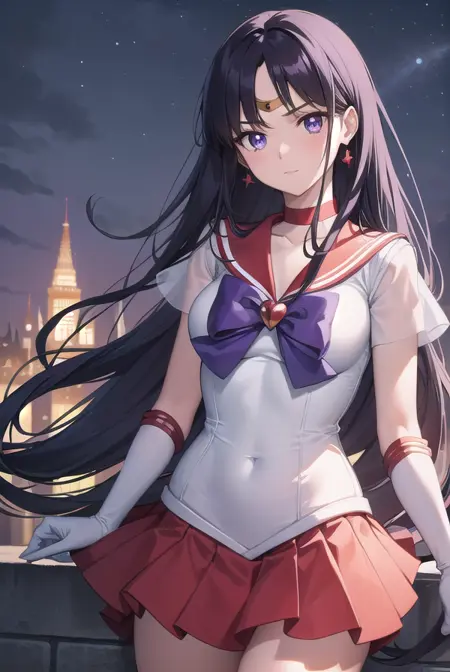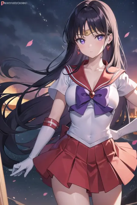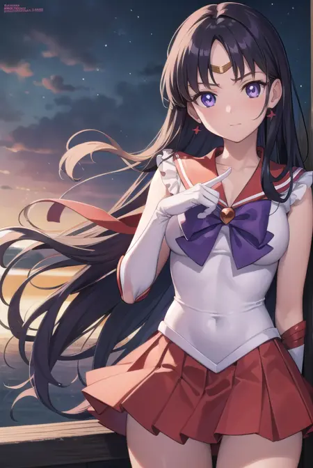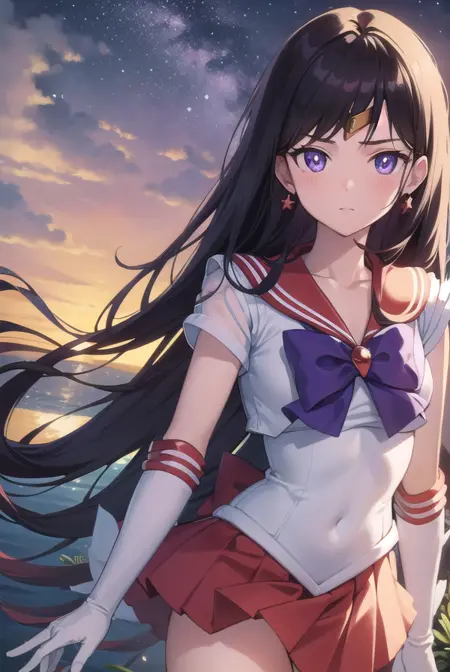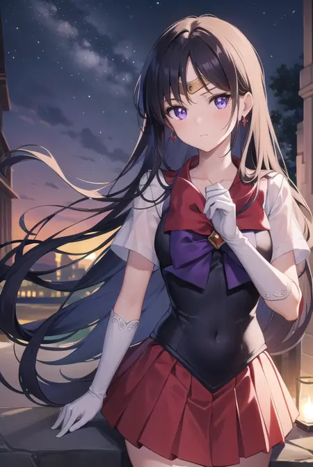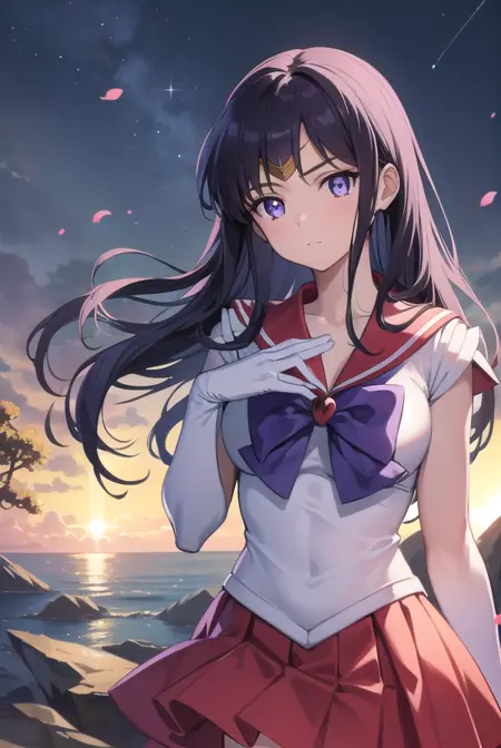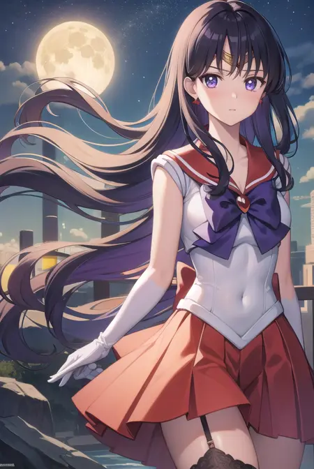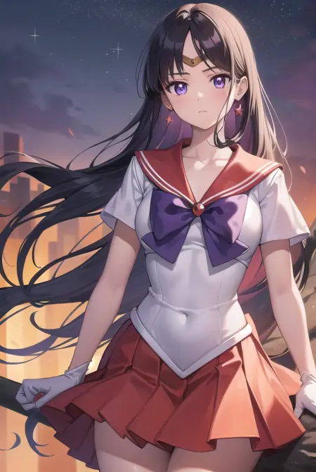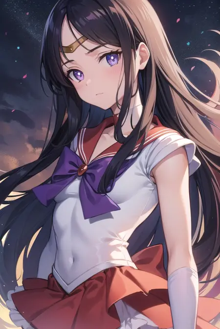 セーラーマーズ、黒髪、ダイアデム、長髪、(紫の目:1.1)、(分け目のある前髪:1.5)、
