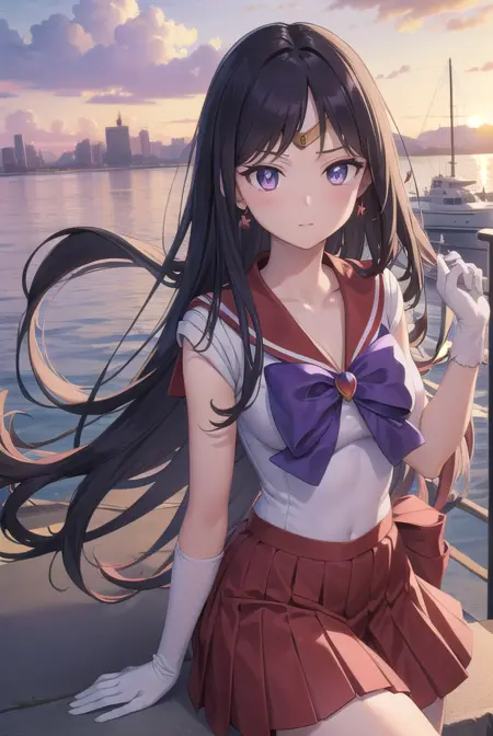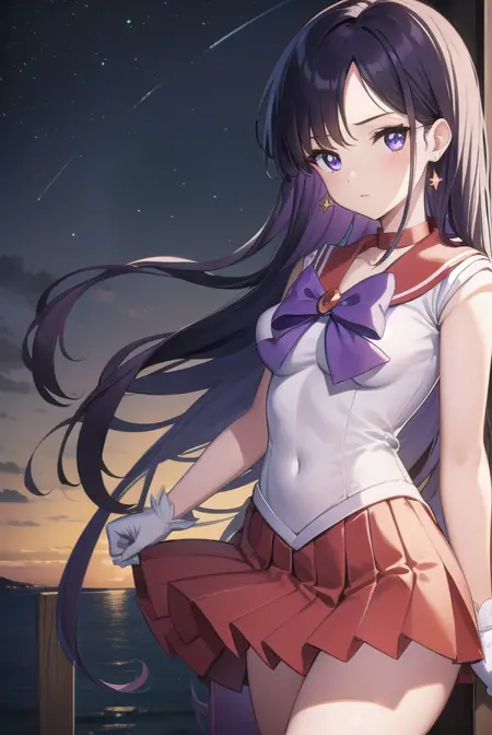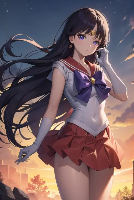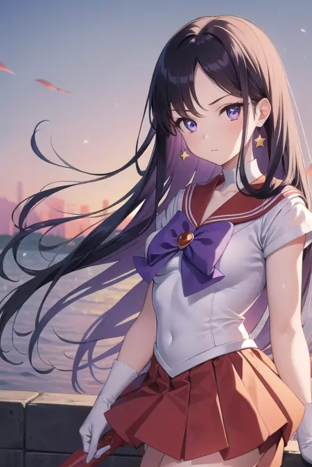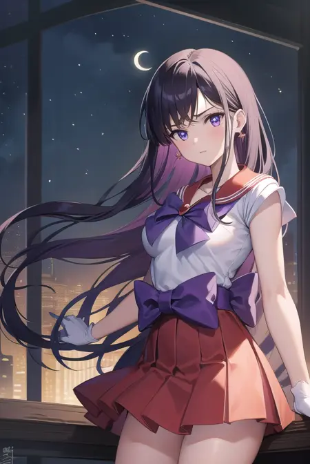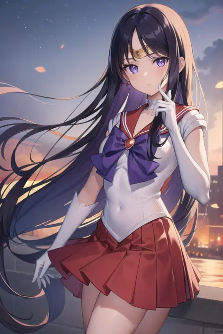 セーラーマーズ、黒髪、ダイアデム、長い髪、(紫の目:1.1)、(分け目のある前髪:1.5)