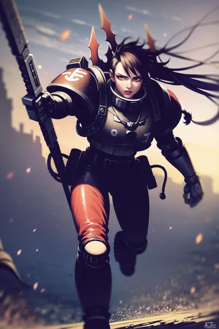 这就是一个战锤40k的元素lora,可以给模型增加战锤元素:如铠甲,翅膀,武器等。