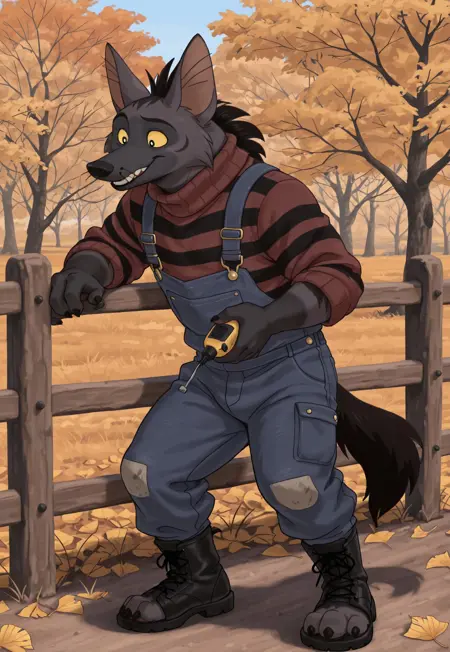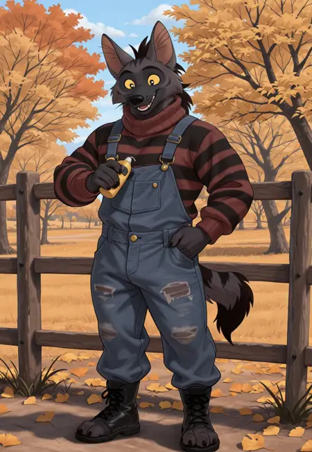 Prompt: Haya, furry, male, aardwolf, dark gray fur with black stripes, long narrow snout with whiskers, yellow sclera