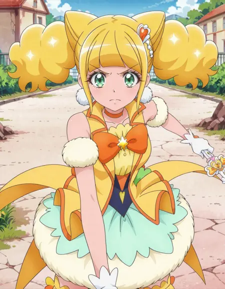 anime screencap, solo,1girl,curesparkle,sparklecostumelora:curesparkle_IL:0.8 high definition,amazing quality,best quality,very aesthetic,masterpiece,absurdres,