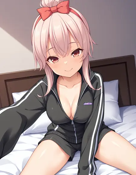 outfit02, 재킷, 트랙 재킷, 반 오픈 재킷, 검정 재킷, 반바지, 짧은 반바지, 검정 반바지, 가슴 노출
