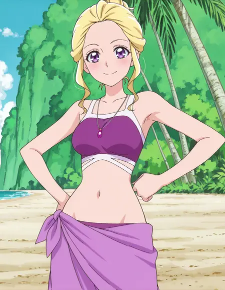 anime screencap, solo,1girl,furinasumi,asumiswimsuit,purple saronglora:furinasumi\_IL:0.8 high definition,amazing quality,best quality,very aesthetic,masterpiece,absurdres,