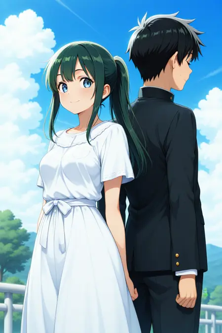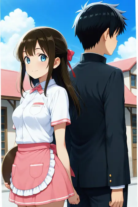This LoRA represents a scene of a boy and girl standing face-to-face, where the girl is in front and the boy is behind her. The male's face is intentionally not shown, aligning with the intended framing.