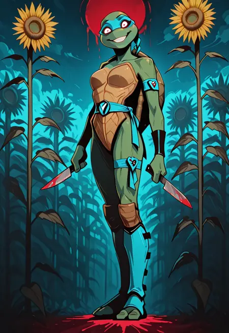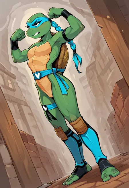 | 训练词汇 | venus_de_milo, ninja turtle, hazel eyes, turtle shell, green skin, colored skin, anthro female,已复制! blue bandana, single hair braid,已复制! wrist guards, armband, waistband, thigh strap, shin guards, toeless footwear,已复制! ninja turtle hands, 2fingers, 2fingers1thumb,已复制! ninja turtle feet, 2toes,已复制! |