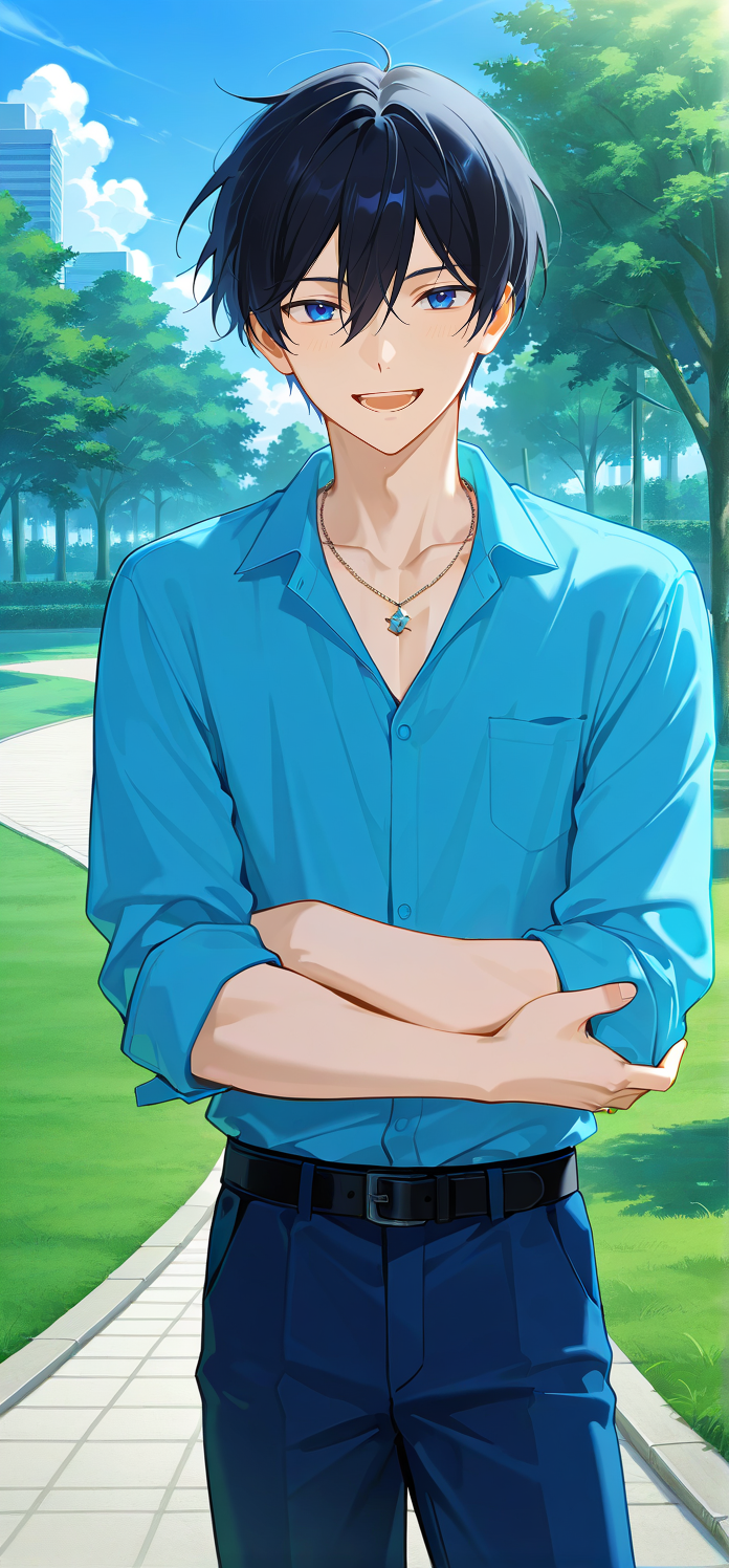 Trigger words: hidaka hokuto,black hair,hair between eyes,blue eyes