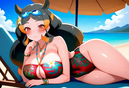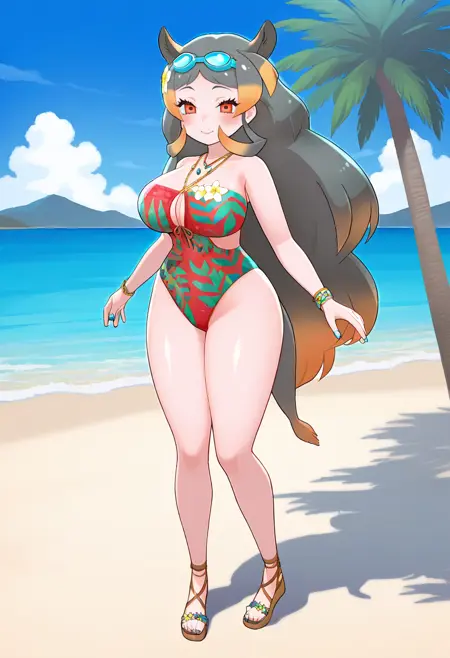 [外观] 河马戈戈普斯 \(兽娘动物园\),长发,极长发,多彩发色,双色发,渐变发色,侧发,黑发,金发,棕发,橙发,灰发,红眼,大乳房,成熟女性,