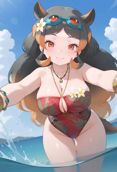 [泳装] higo3rd,护目镜,护目镜戴在头上,头戴眼镜,发饰花,泳装,印花泳装,多彩泳装,双色泳装,绿色连体泳衣,连体泳衣,红色连体泳衣,休闲连体泳衣,珠宝,手镯,项链,水蓝色指甲,蓝色指甲,指甲油,凉鞋,角斗士凉鞋,露趾鞋,棕色鞋履,