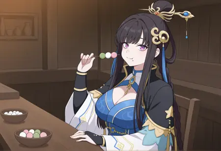 very long hair, black hair, long sidelocks, braid, hair ornament, single hair bun, chinese hairpin, cleavage cutout, long sleeves, wide sleeves, chinese clothes, capelet, bridal gauntlets