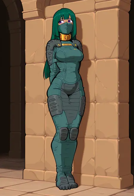 나의 다른 모든 모델과 마찬가지로, 이 모델도 팔을 옆구리에 융합하는 데 매우 고집스러워 재학습이 필요할 수 있지만, 팔을 교차시키거나 뒤로 묶는 방식은 동일하게 잘 작동합니다. "alt costume" 프롬프트는 추가 안전을 위해 고무 어깨 패드를 의상에 추가합니다.