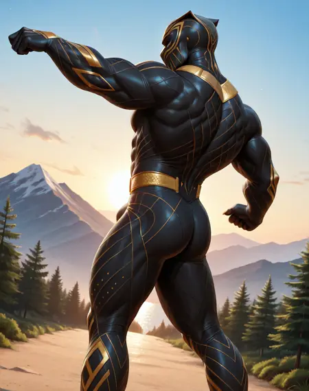 このLoRA向けのプロンプトは以下の通りです:(Killmonger MCU, muscular, supersuit, )
