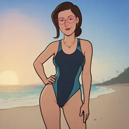 连续第三个戴眼镜的女孩!!这位没有名字、未署名的女精神科医生,有着可爱的发型,在Netflix动画《Long Story Short》第三集(哈哈)开头出现,我觉得她仅在屏幕上短暂亮相简直是犯罪。而且在她整个短暂的出场中,她都坐在办公桌后,因此我为她生成并训练的丝袜和高跟鞋纯属个人脑补。但我认为这样的设定很合适。