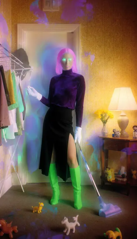 This model was trained to generate images in a negative style, characterized by strong contrasts, inverted colors, and dreamlike, surreal atmospheres.
