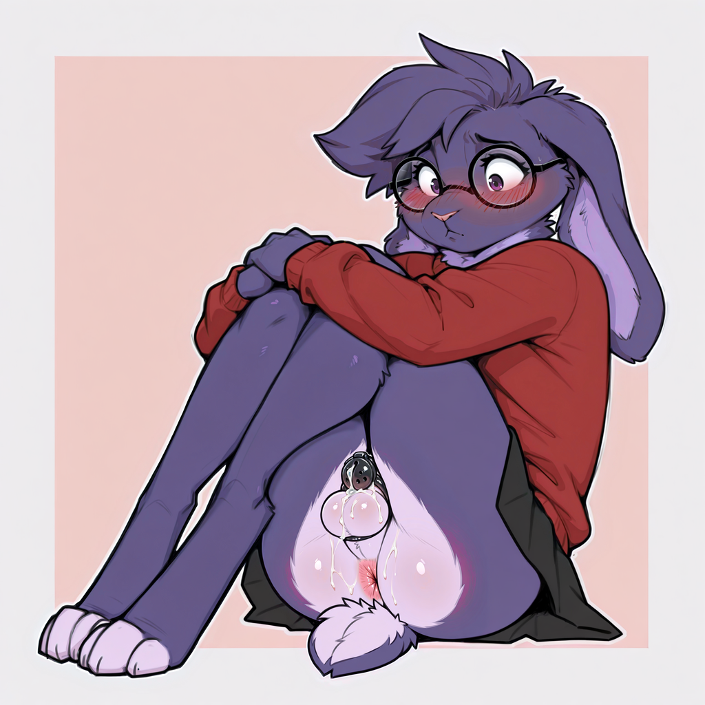 트리거: flat chastity cage, (추가 태그: cum while chaste, chastity device,