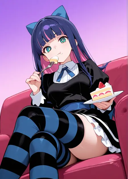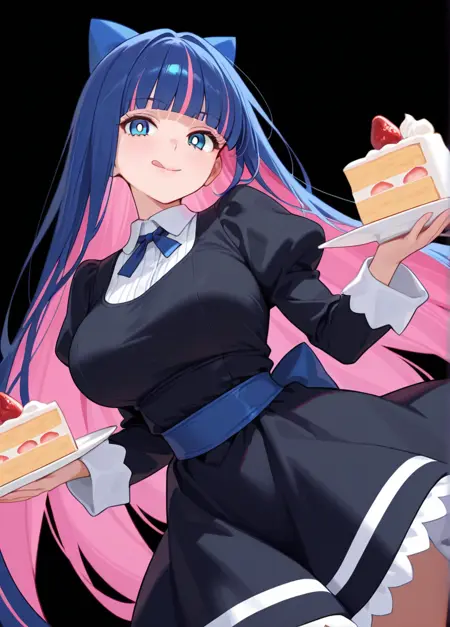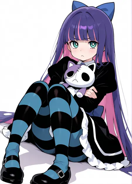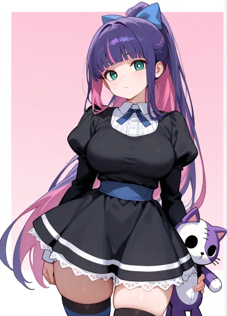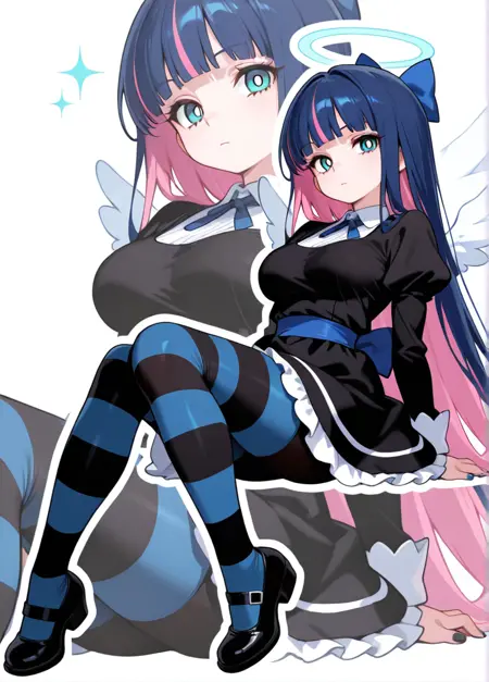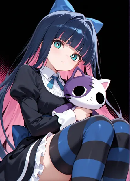 stockingxd, 1girl, long hair, very long hair, blue hair, pink hair, purple hair, multicolored hair, blunt bangs, two-tone hair, aqua eyes, ear piercing, straight hair, colored inner hair, hime cut,