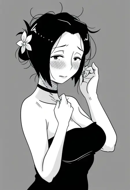 HSAOkaaSan, 单色, 1girl, 单人, 成熟女性, 短发, 波波头, 中等胸部,